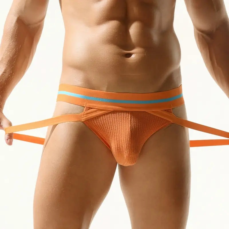 Engineered for peak performance, Tauwell's jockstrap combines 95% Rayon + 5% Spandex for silk-like softness and 4x stretch. The anatomical 3D pouch protects your key areas during intense workouts, while the wide 4cm waistband prevents rolling. Dual Y-back straps eliminate chafing, and seamless sides enhance mobility. Perfect for gym sessions (grey style with safety accents) or daily wear (discreet blue). Men's sexy underwear with ribbed texture for durability and low-rise design for full hip motion. Upgrade to the hottest male underwear offering muscle support, sweat-wicking, and sexy male panties comfort. Ideal for men with jockstrap needs!